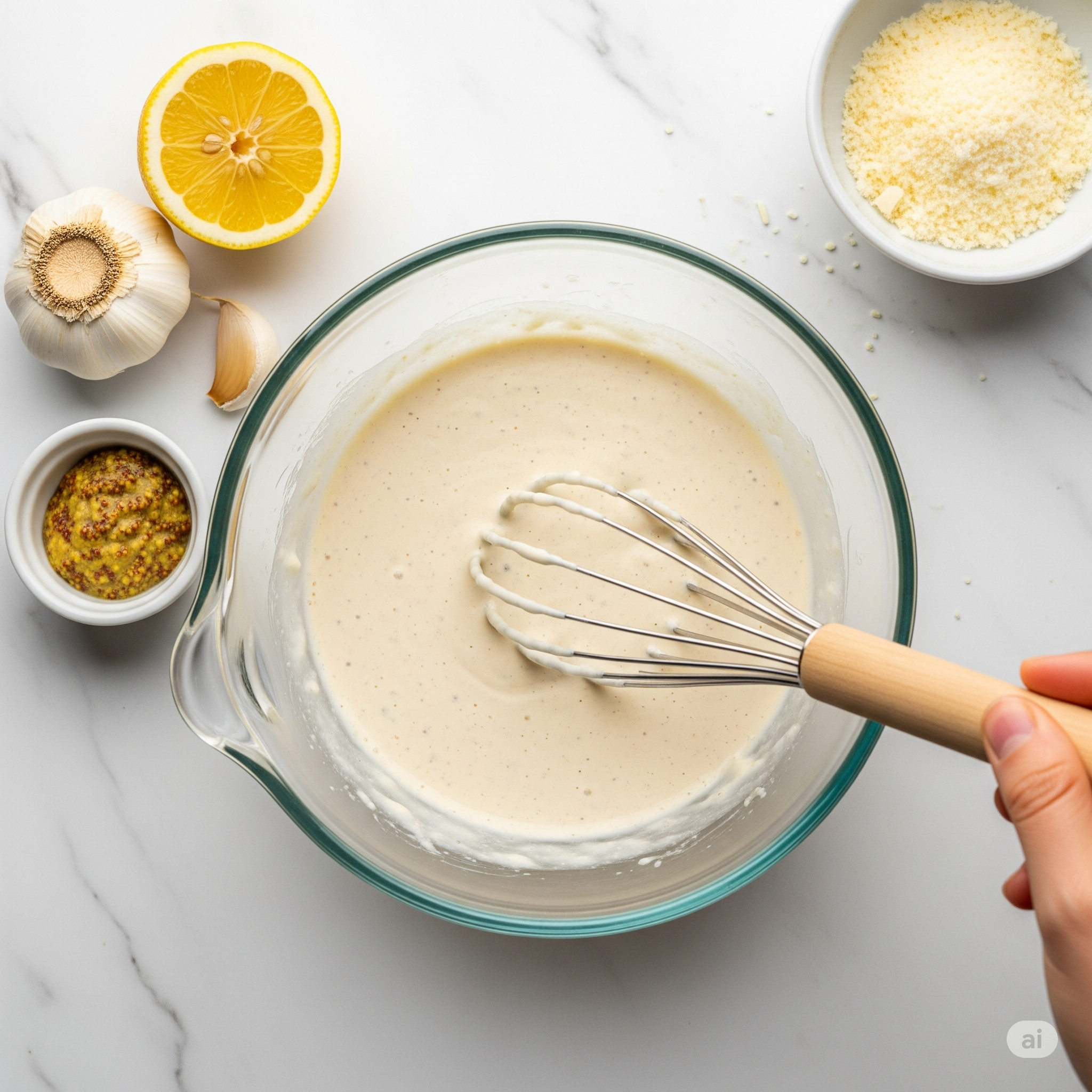 Avocado mimics the richness of Caesar dressing, especially useful if you're using lighter or dairy-free dressings.